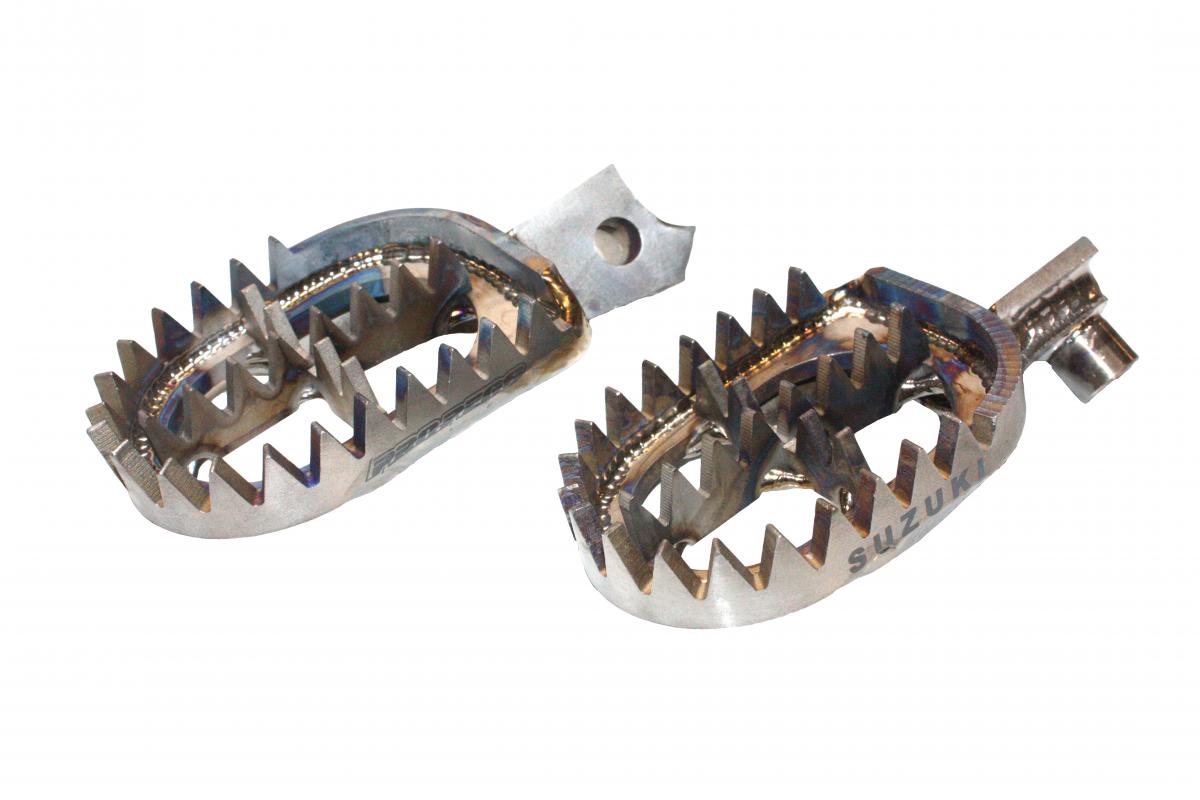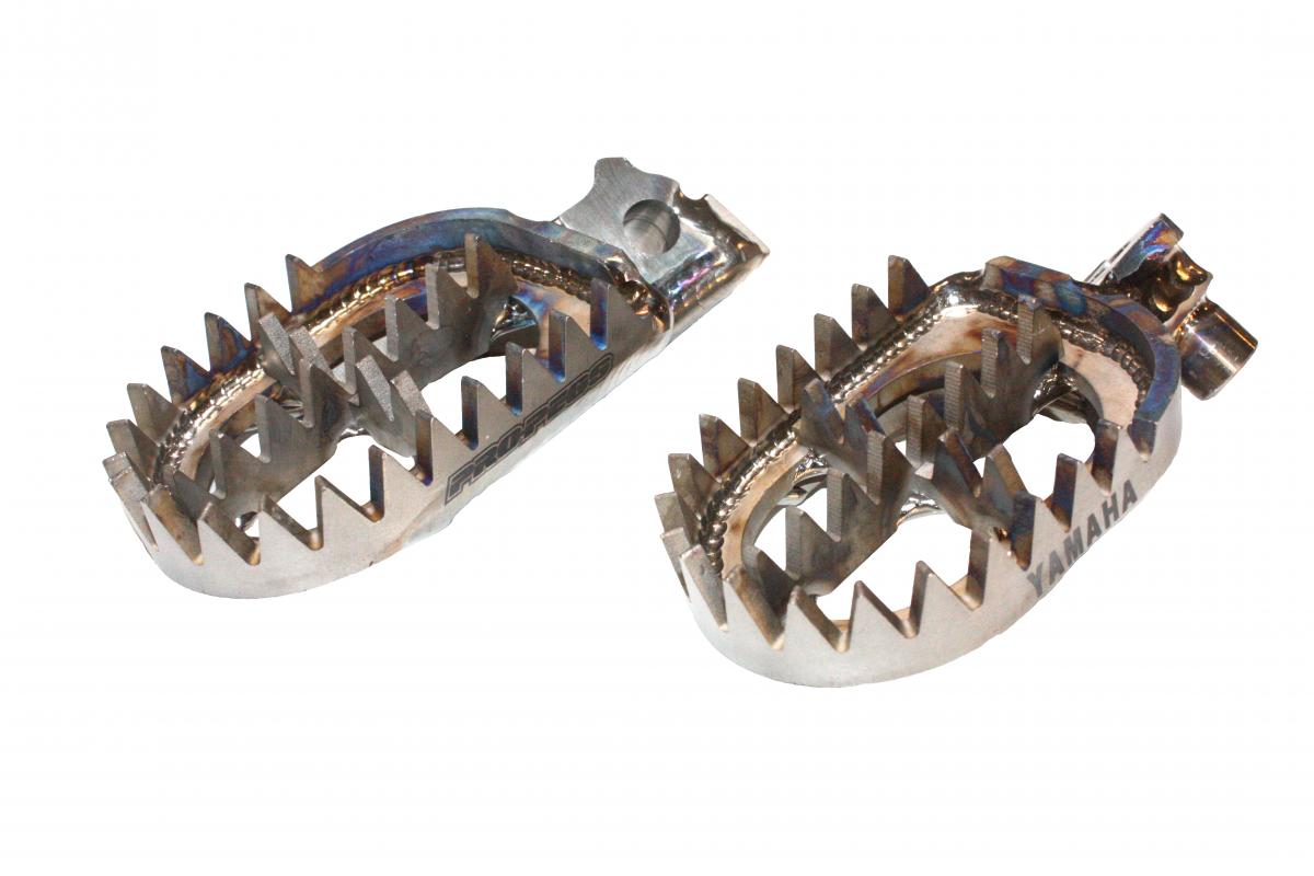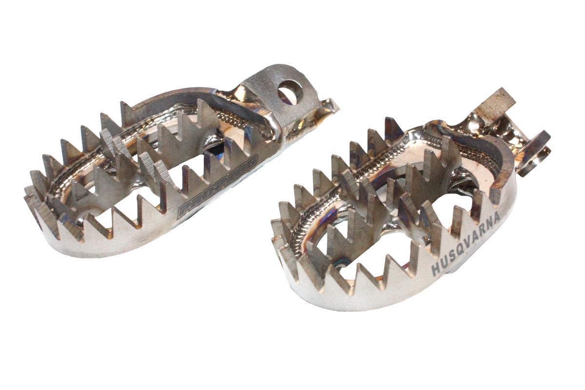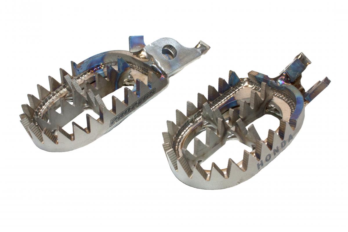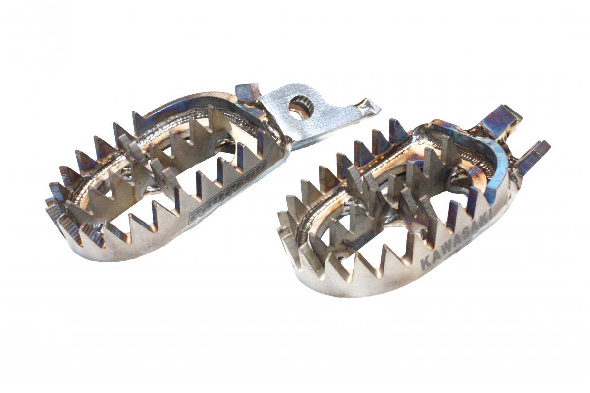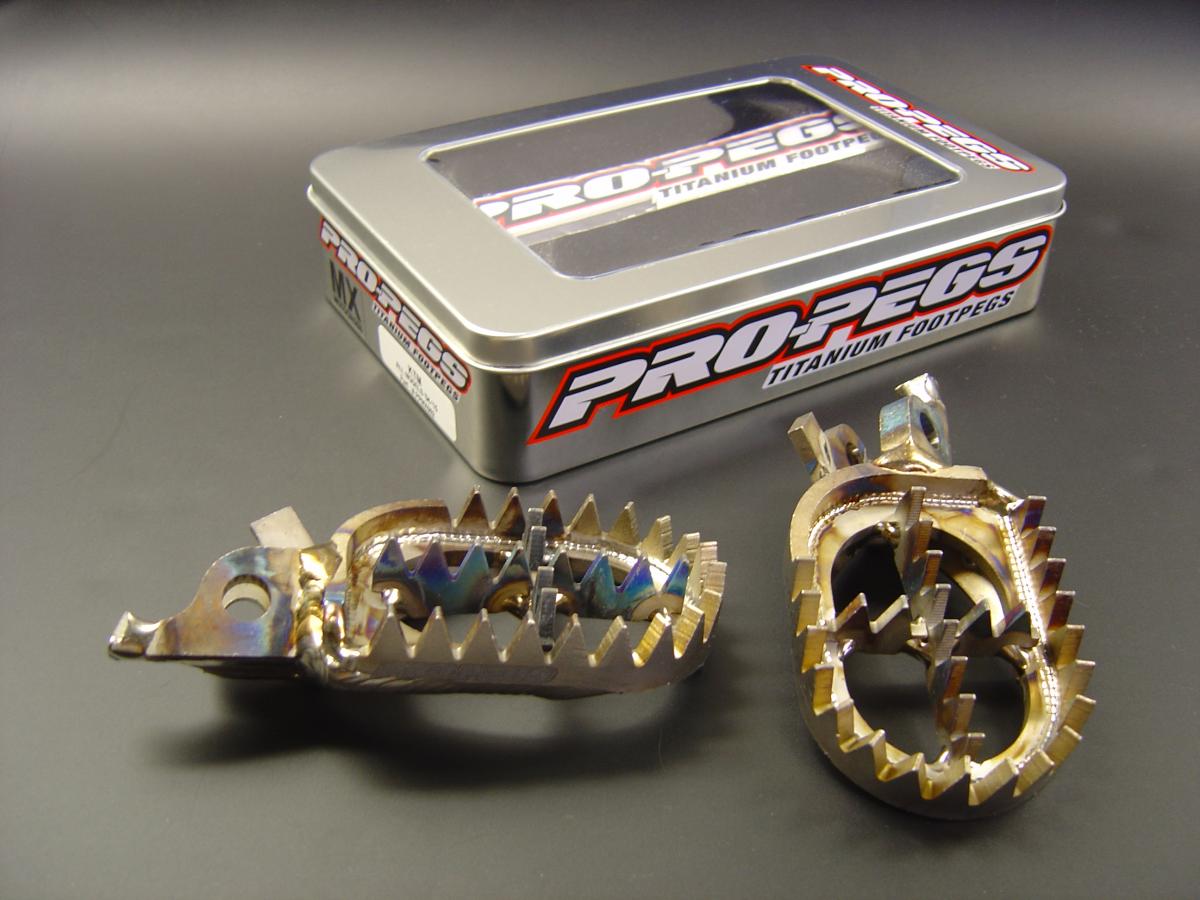 Manufactured to the highest standards from aerospace grade titanium, using the latest manufacturing techniques to produce the strongest welds, eliminating stress and corrosion. PRO-PEGS Titanium sets the standards with a bigger platform and greater surface area providing the rider with maximum GRIP! - Available for HONDA, KAWASAKI, KTM, HUSQVARNA and YAMAHA MX and offroad bikes.