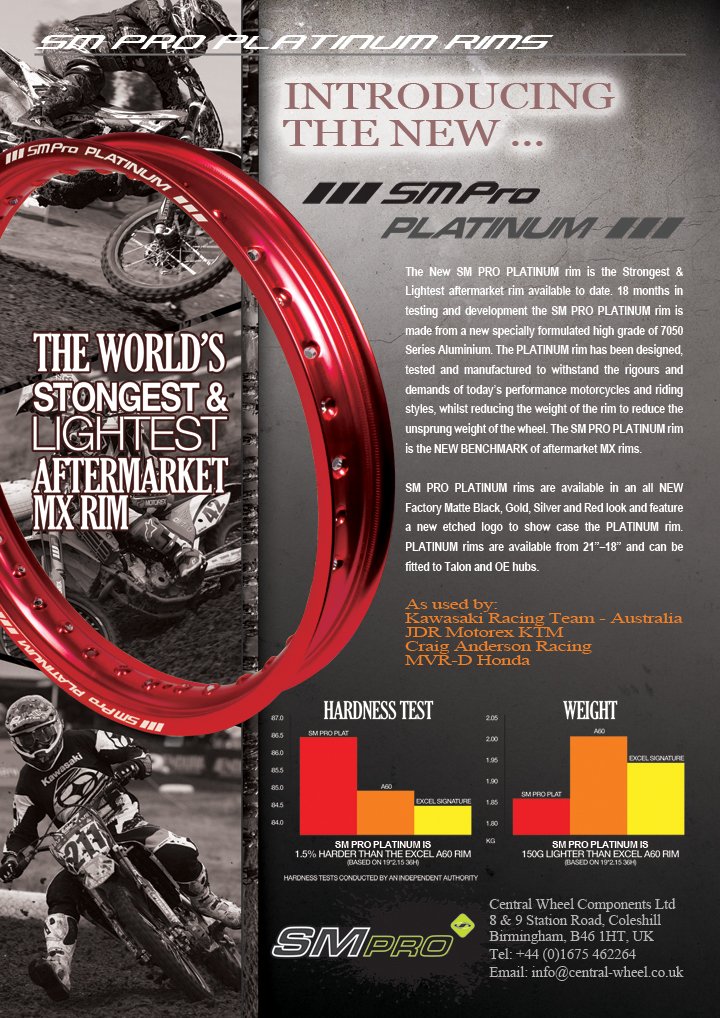 This combines to make the SM Pro platinum rim the New Benchmark for aftermarket MX rims.