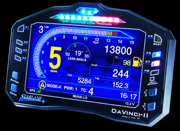 | DAVINCI-II S revolutionizes the concept of digital dashboard and defines a new technological step in the world market due to the full support of the exclusive wireless WID modules, already several times world champions on Starlane Corsaro devices. |
