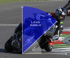 Inertial Pack performs the calculation and indication of: LEAN ANGLE LATERAL ACCELERATION in G LONGITUDINAL ACCELERATION in G The analysis software also shows the acceleration and lean angle charts. |