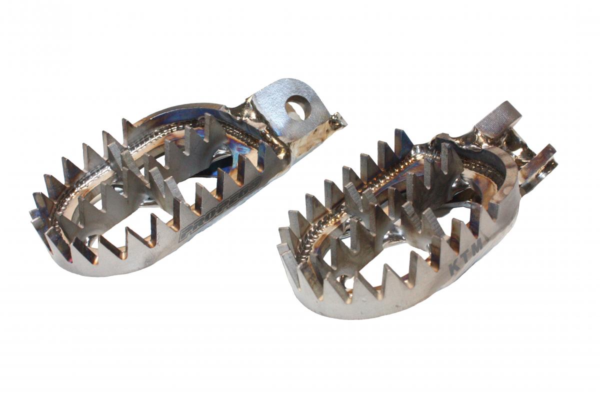 Manufactured to the highest standards from aerospace grade titanium, using the latest manufacturing techniques to produce the strongest welds, eliminating stress and corrosion. PRO-PEGS Titanium sets the standards with a bigger platform and greater surface area providing the rider with maximum GRIP! - Available for HONDA, KAWASAKI, KTM, HUSQVARNA and YAMAHA MX and offroad bikes.