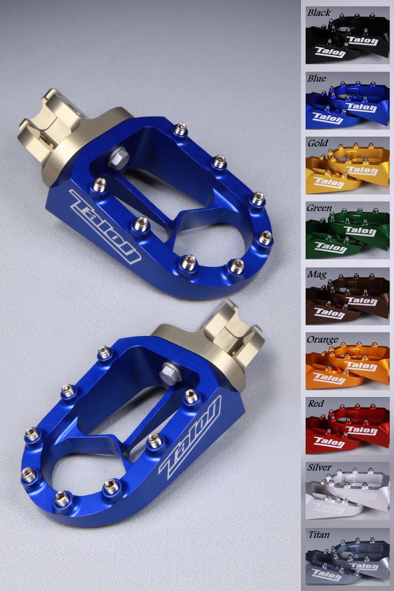 De "TALON X8 FOOTRESTS" zijn vervaardigd uit hoogwaardig aluminium materiaal met verwijderbare en vervangbare grip studs. Door het grote oppervlak en verhoogde grip zal je nooit meer van je voetsteunen afschuiven. De "TALON X8 FOOTRESTS" zijn beschikbaar in verschillende kleuren waaronder grijs, zwart, goud, blauw, rood en groen.
